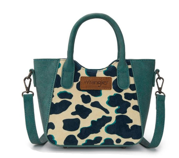 Wrangler Cow Print Mini Tote/Crossbody - Turquoise