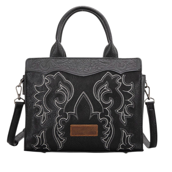 Wrangler Tooled Aztec Pattern Print Tote/Crossbody -Black