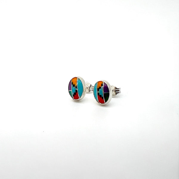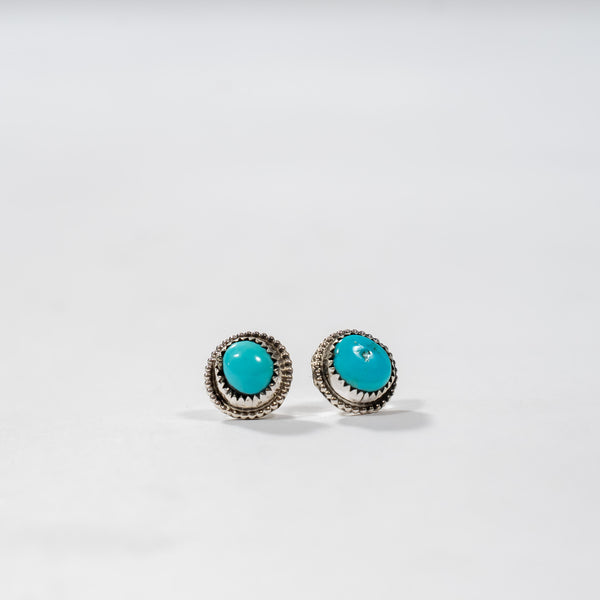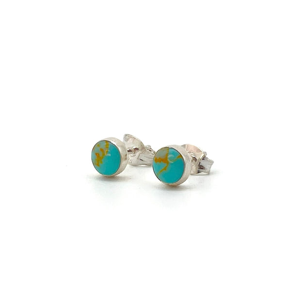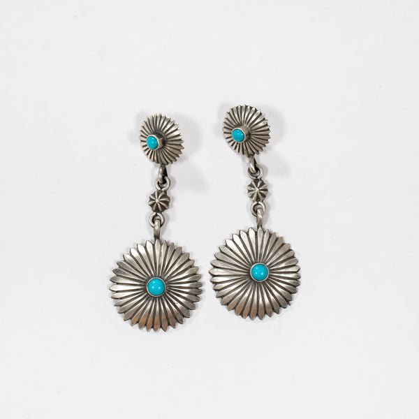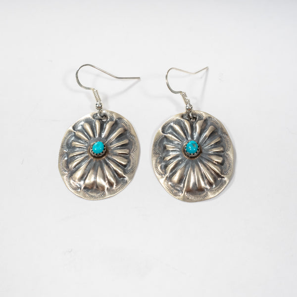 Brushed Sterling Silver and Turquoise Concho Earrings