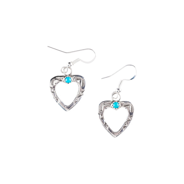 Sterling Silver Navajo Turquoise Heart Earrings